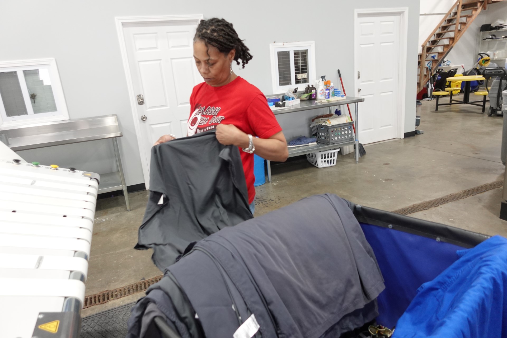 - Orders that are washed, dried, folded, and organized for pickup.